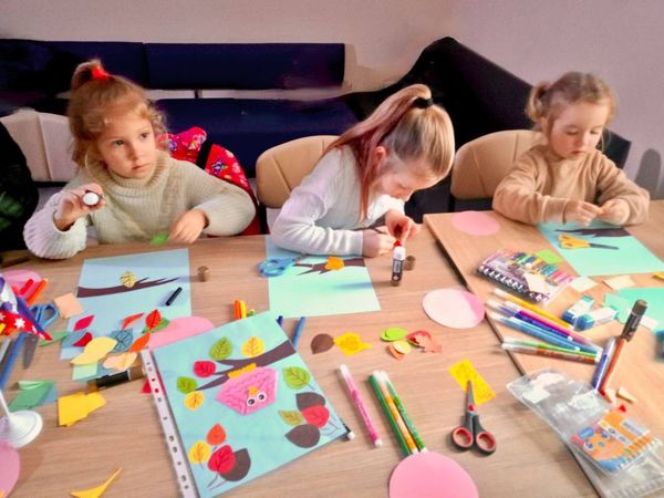 ✨ Цього разу на майстер-класі малеча виготовляла з кольорового паперу об’ємну аплікацію кумедного птаха 🦉 на осінньому дереві.