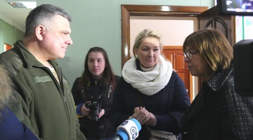 Під час візиту гості поспілкувались з керівником військово-цивільної адміністрації Авдіївки Павлом Малихіним. Він розповів їм про хід відновлювальних робіт та стан гуманітарної ситуації у місті. Голова ВЦА повідомив, що місцева влада за підтримки Донецької облдержадміністрації намагається у найкоротші терміни забезпечити потреби населення та відновити житло.