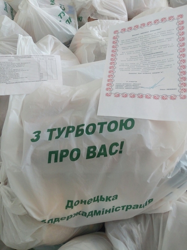 Продуктові набори придбані за рахунок субвенції з обласного бюджету місцевим бюджетам за проектом ініційованим головою Донецької облдержадміністрації Павлом Кириленком, з метою підтримки незахищених верств населення на період карантину.