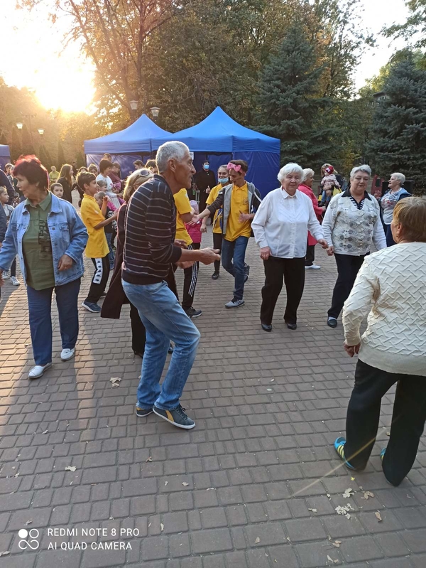 Спочатку всіх присутніх своїм співом зачарував хор ветеранів ПК і Т ПрАТ «АКХЗ», а потім підопічні територіального центру та просто перехожі вже підхоплювали танцювальну естафету. Між танцювальними номерами люди залюбки спілкувалися та ділилися своїми історіями та враженнями: згадували перші танці у клубах, перше кохання, перше знайомство зі своїми другими половинками. Присутні подружні пари розкривали секрети щасливого сімейного життя (60 та 45 років разом). А одинокі літні люди мали змогу знайти собі нових друзів.