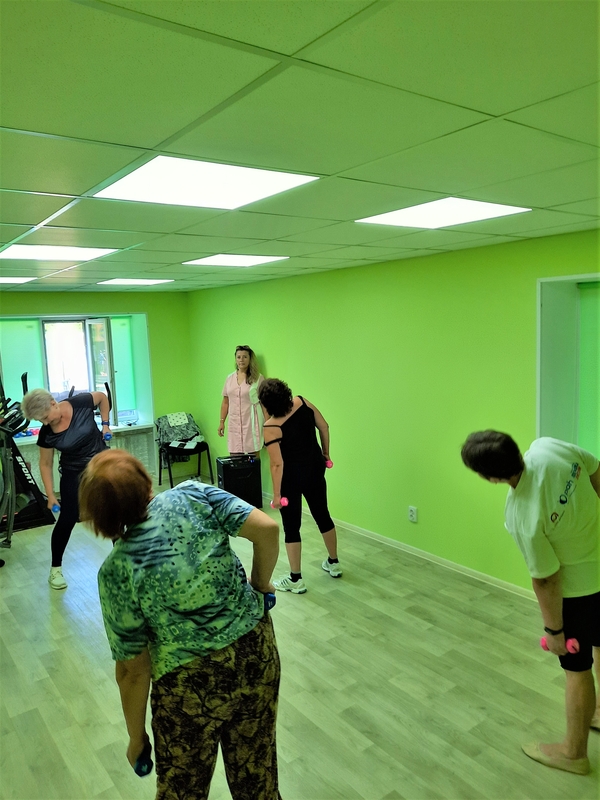 Під кінець занять, кожен з учасників руханки може (за бажанням) позайматися на тренажерах: велотренажері, біговій доріжці та орбітреку. Особливою умовою для занять в спортзалі є відвідування медичної сестри на базі тер.центру. Медична сестра вимірює тиск та пульс кожному відвідувачу до руханки та супроводжує під час фізичних занять.