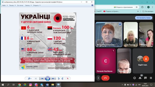 8 травня, у День пам'яті та перемоги над нацизмом у Другій світовій війні, пройшла онлайн-зустріч спеціалістів служби у справах дітей та завідуючої Народним музеєм історії міста Авдіївка – з дітьми нашої громади.
