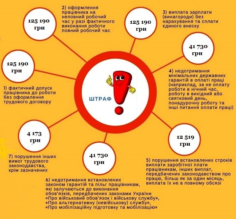За які порушення і в яких розмірах передбачаються штрафи для юридичних та фізичних осіб – підприємців, що використовують найману працю: