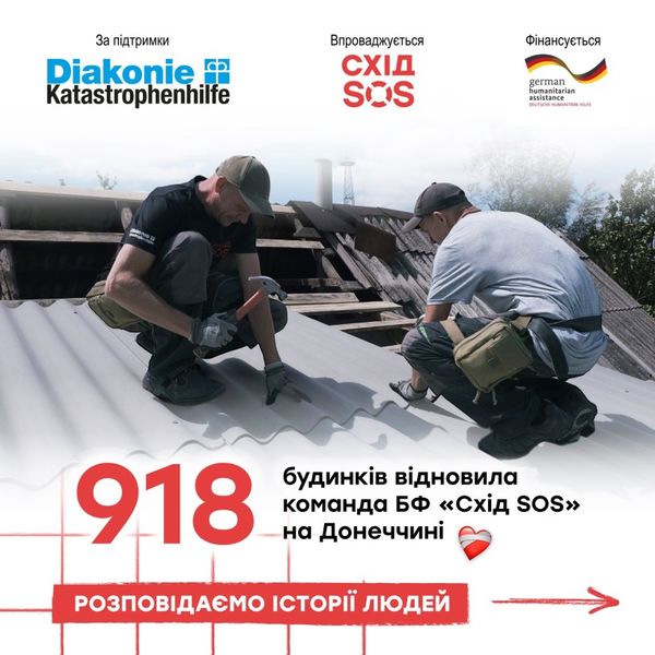 Від січня 2024 року команда відбудови Благодійного фонду «Схід SOS» відновила 918 будинків на Донеччині, постраждалих внаслідок російських обстрілів.