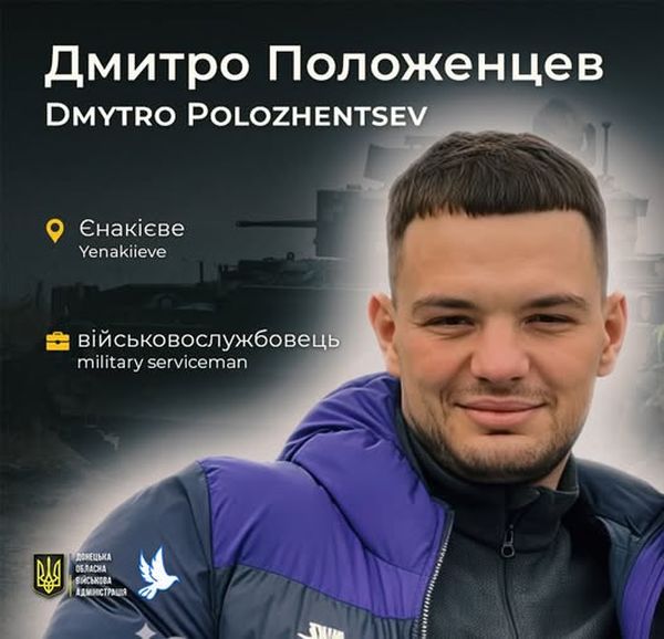 Молодший лейтенант Дмитро Положенцев загинув 31 березня 2022 року під час виконання бойового завдання на металургійному комбінаті «Азовсталь» в місті Маріуполі. Воїну було 25 років.