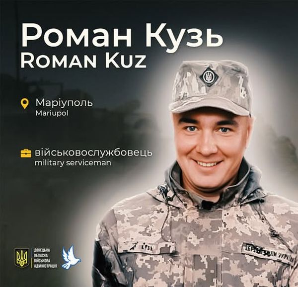 42-річний військовий Роман Кузь поліг у бою за рідний Маріуполь 22 квітня 2022 року. Сталося це поблизу заводу «Азовсталь».