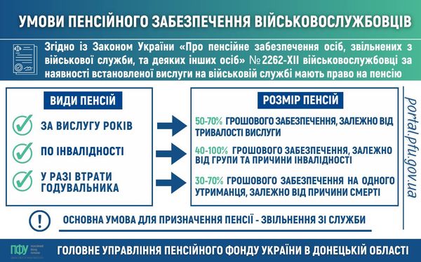 Згідно із Законом України «Про пенсійне забезпечення осіб, звільнених з військової служби, та деяких інших осіб» № 2262-XII військовослужбовці за наявності встановленої вислуги на військовій службі мають право на пенсію за вислугу років.