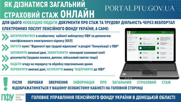 Після обробки звернення інформація про загальний страховий стаж відображатиметься в особистому кабінеті на вебпорталі Пенсійного фонду України